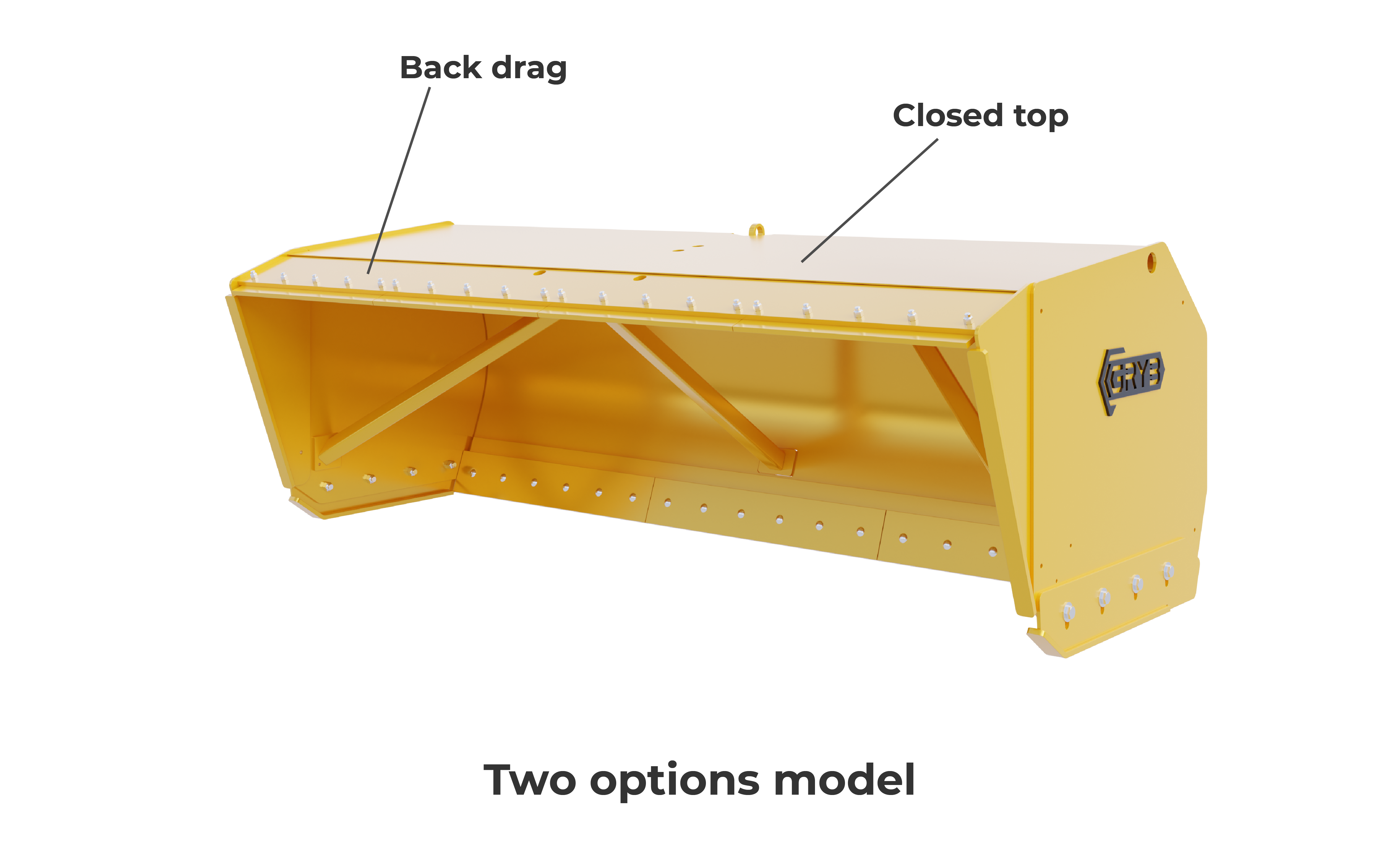 GRYB's reversible snow pusher is a conventional model with a bottom-fixed blade. A retraction blade can be installed on top of the reversible snow pusher to increase your snow-clearing operation possibilities. With its highest durability, the GRYB reversible snow pusher adapts to all outdoor work types. Three models are available: an open pusher, a sealed pusher with a retraction blade, and an open pusher with a retraction blade.